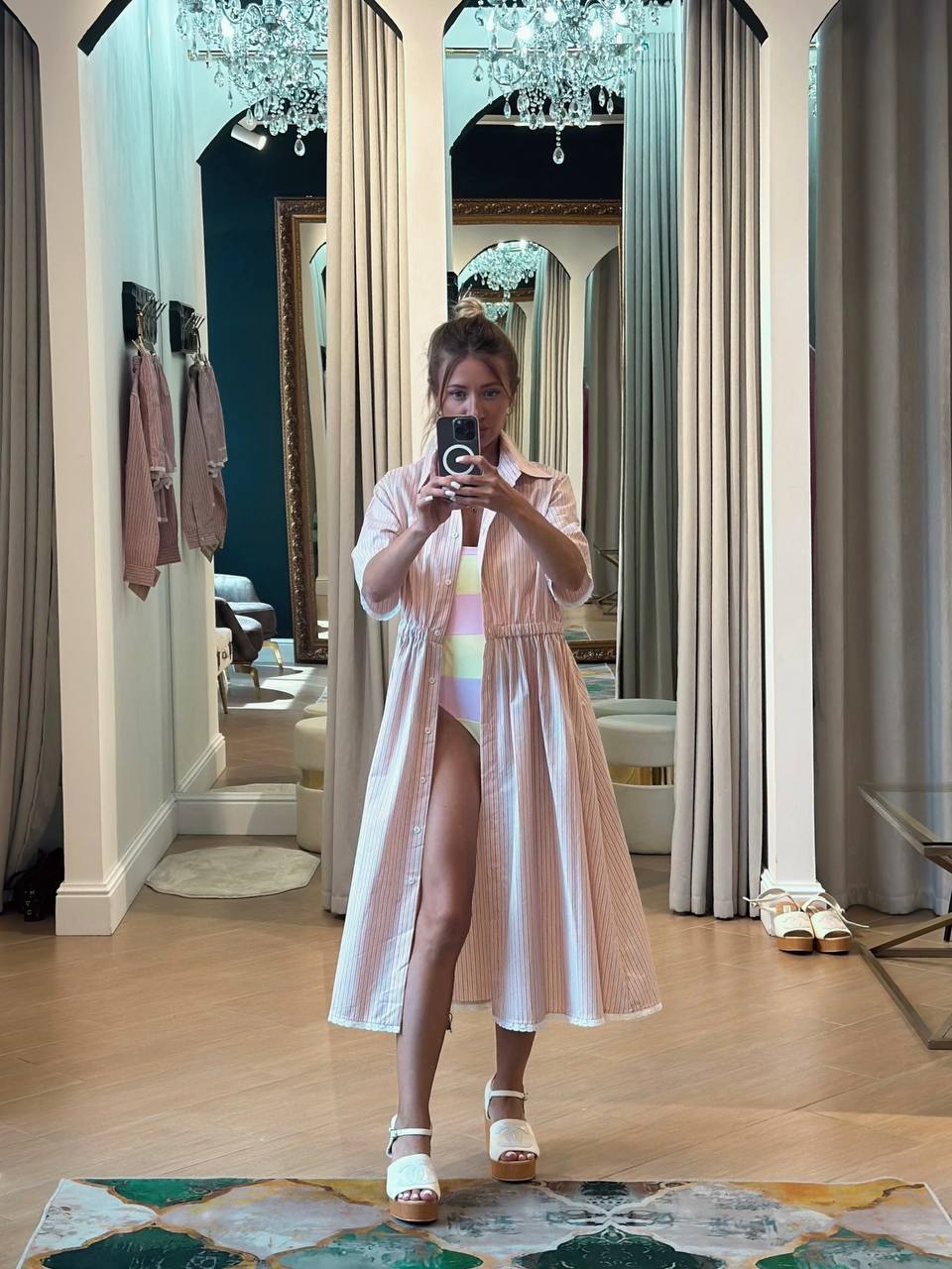 Платье-халат — элегантность без усилий. Идеальный баланс комфорта и стиля. Невесомый хлопок пастельных тонов создаёт ощущение лёгкости в любом образе. Как носить: - На пляж с купальником - В город с поясом и сандалиями - Дома с минималистичными аксессуарами Тонкая грань между домашним уютом и выходным шиком — фирменный почерк бренда