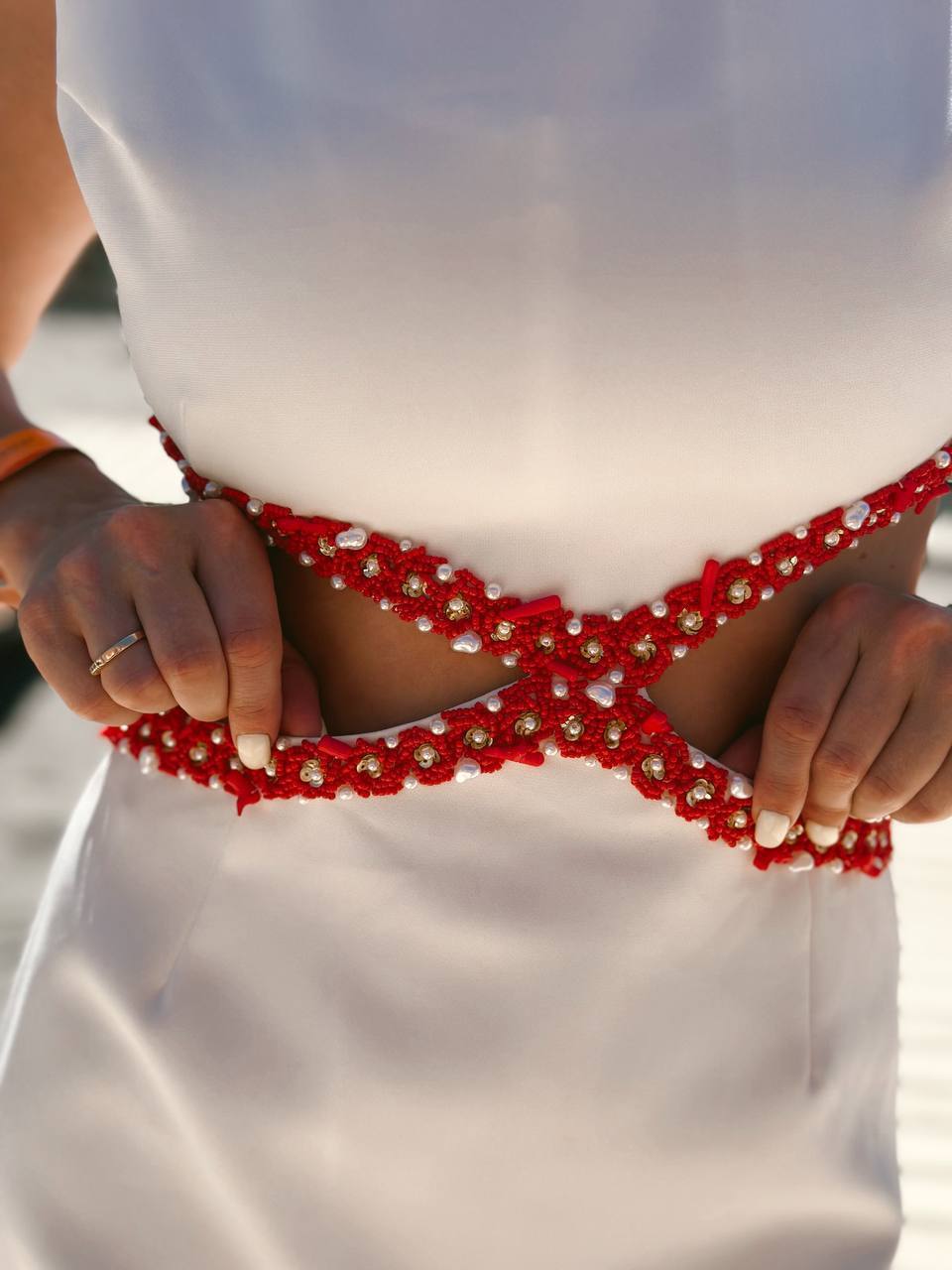 Вечерний образ с коралловым бисером — роскошь в каждой детали Этот наряд — воплощение элегантности и чувственности. Открытая поясница подчеркивает женственный силуэт, а мерцающий коралловый бисер добавляет ноту изысканности.