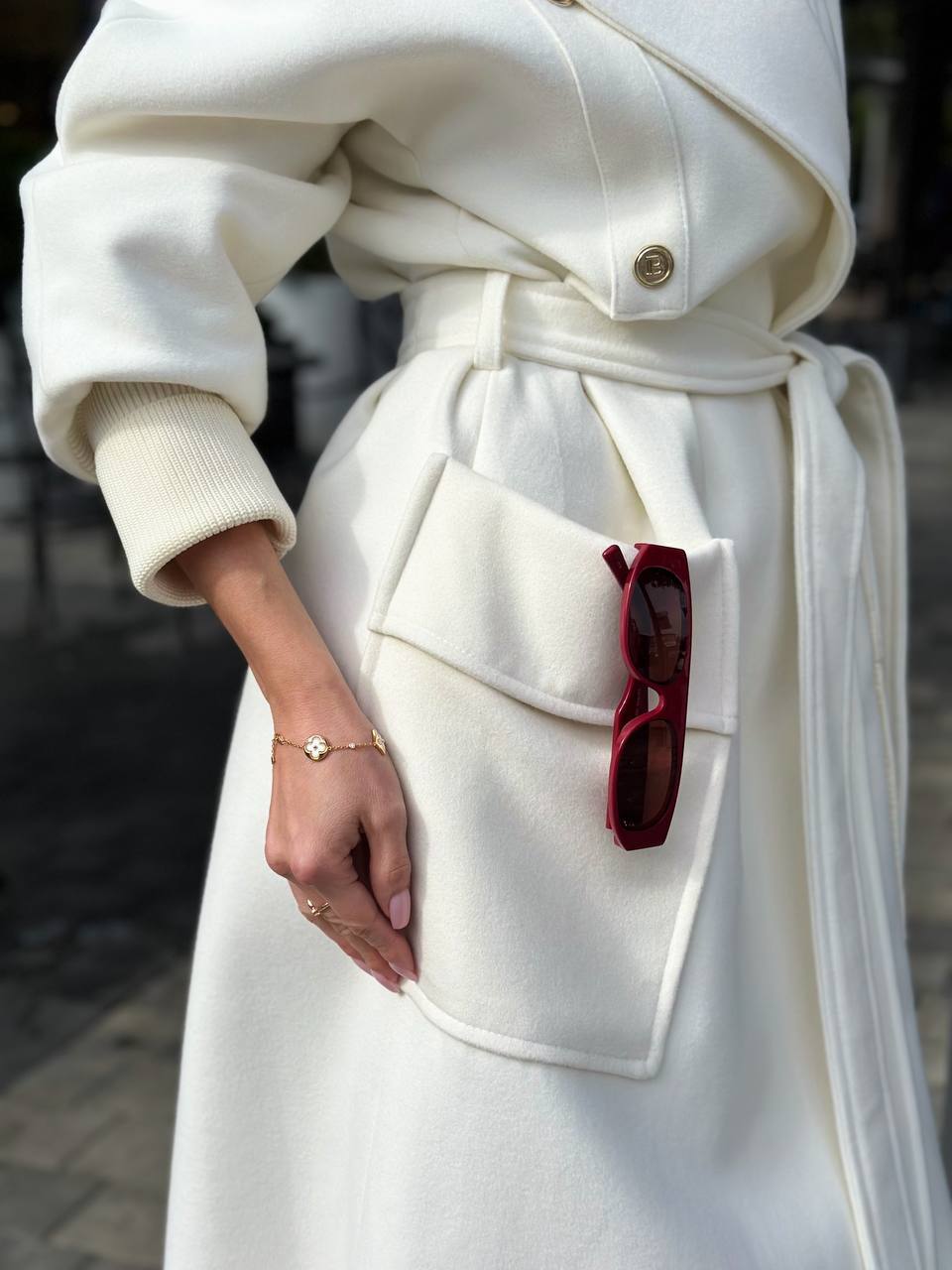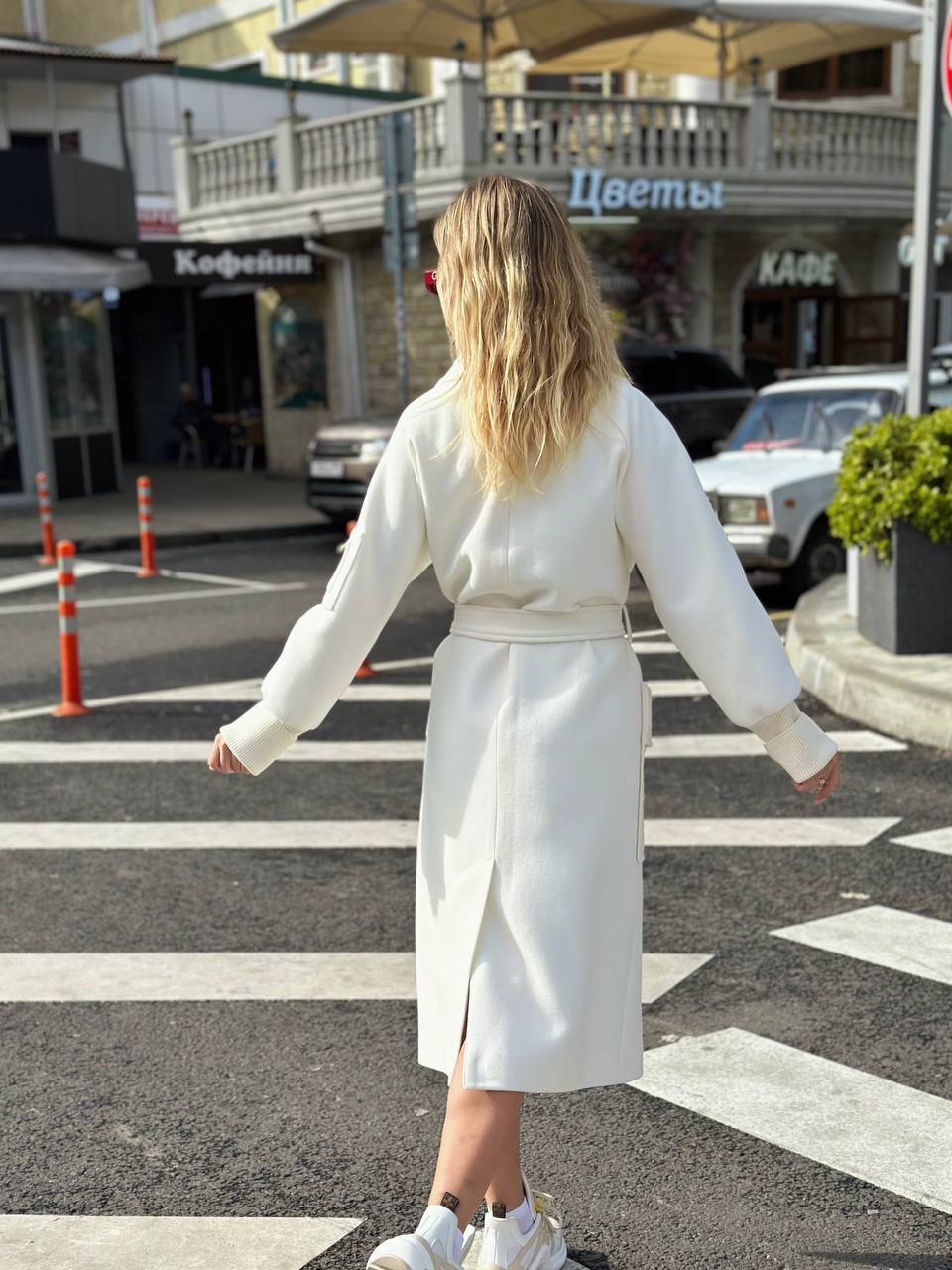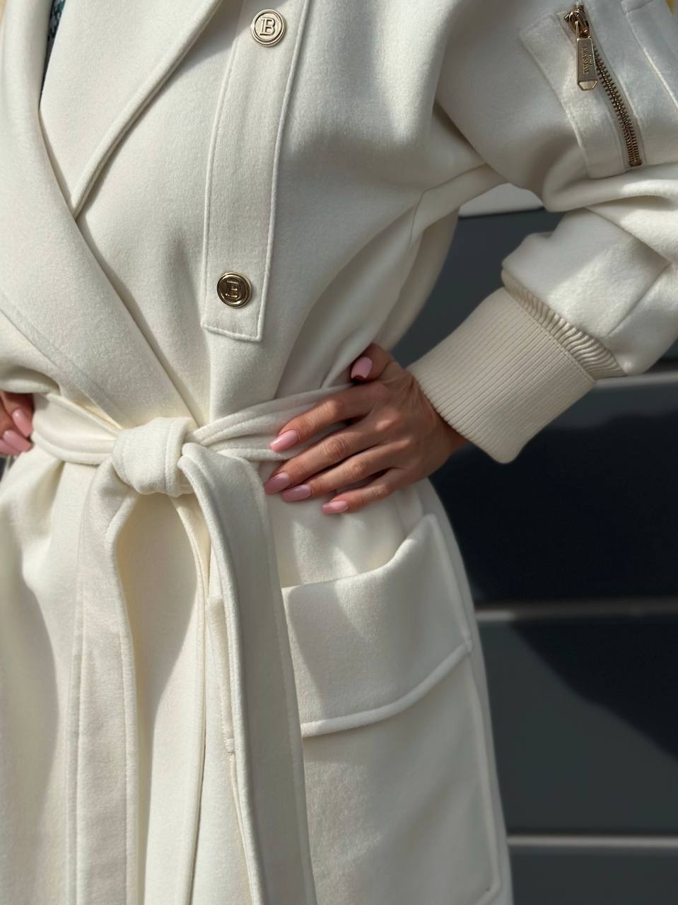 Обоаз в стиле классической роскоши Материал: 100% премиальный кашемир молочного оттенка Утеплённая подкладка из вискозы Особо мягкая обработка волокон для невесомости Конструкция: Классическая длина midi (до середины икры) Дизайн на запах с поясом из той же ткани Акцентные детали: вязаные манжеты ручной работы Функциональные накладные карманы Отличительные черты: Чёткий силуэт с французским кроем по плечу Усиленные швы и фирменная фурнитура э Естественная терморегуляция (от +5°C до -15°C) Рекомендую стилевые решения: Деловой образ: с водолазкой и кожаным портфелем Уличный шик: с oversize-свитером и ботфортами Вечерний вариант: поверх платья-футляра Эталон элегантности На все случаи жизни
