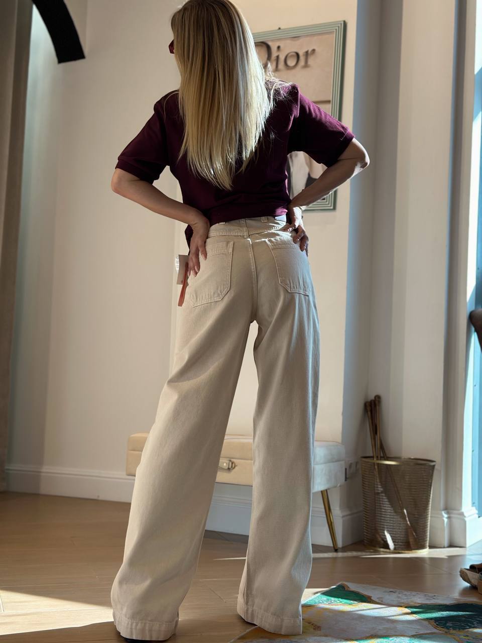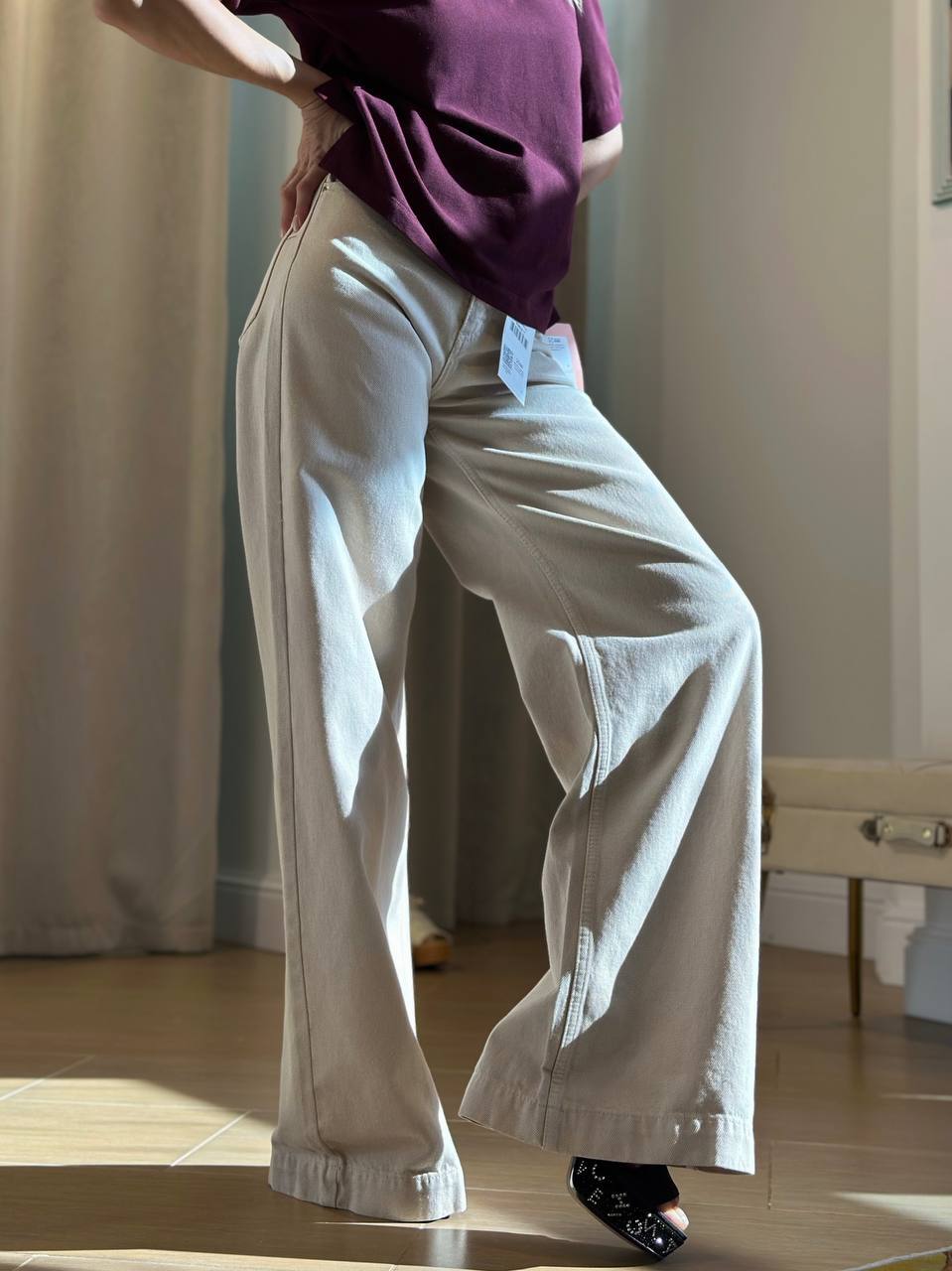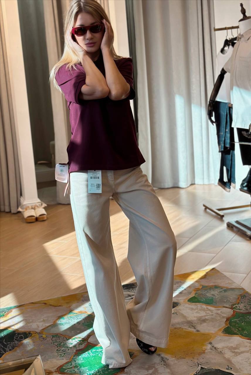 Широкая модель из мягкой джинсы с эффектом палаццо. Высокая талия и свободный крой создают удлиненный силуэт. Особенности: - Универсальный джинсовый крой палаццо - Высокая посадка для визуального вытягивания ног - Эластичная джинса с мягкостью хлопка для комфорта - Классический бежевый Стилевые сочетания: С облегающим топом и балетками – для повседневного образа. С каблуками и шелковым топом – для вечернего варианта. Для: офиса, прогулок, встреч и вечерних выходов.