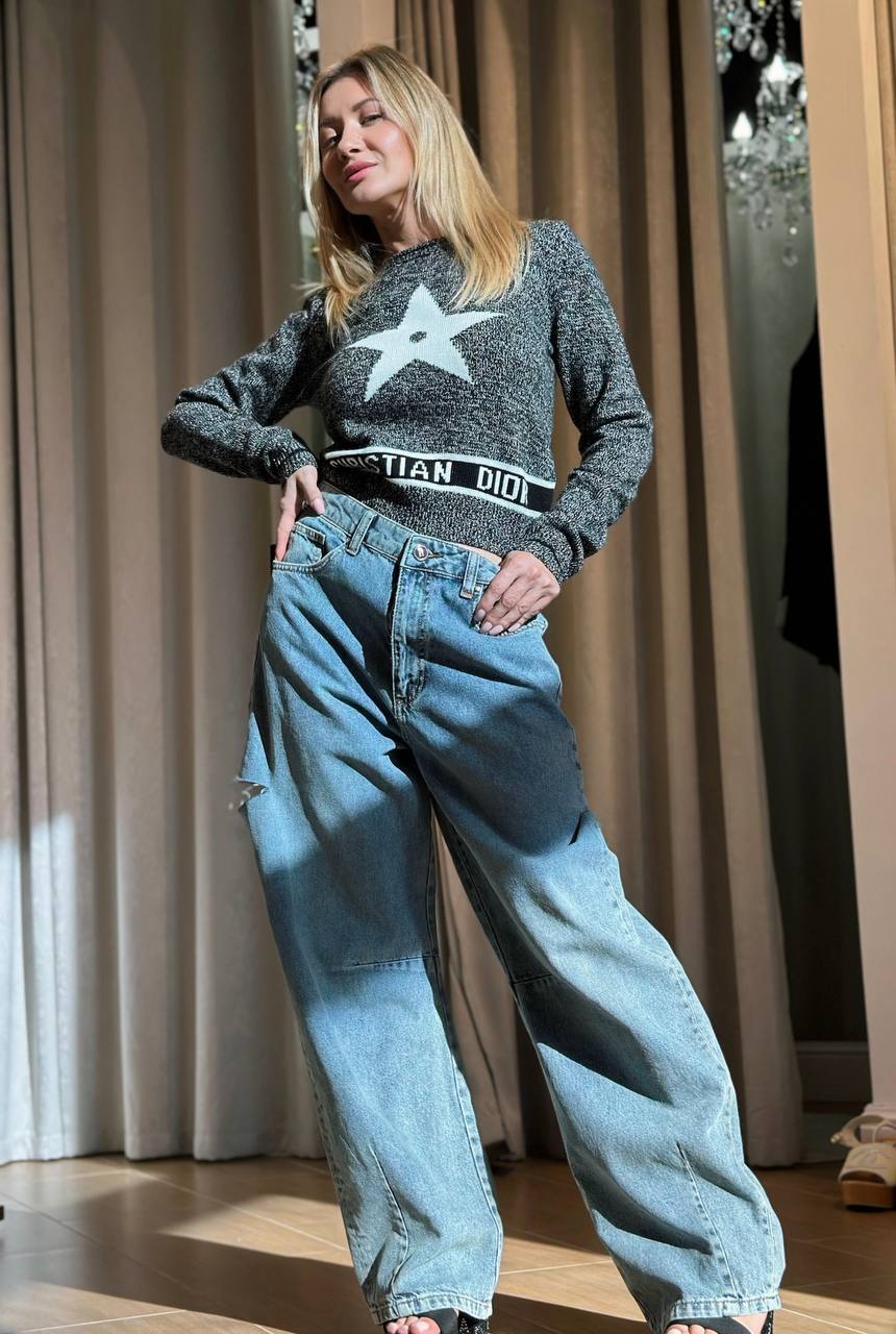 Элегантный серый пуловер из мягкого трикотажа с укороченным кроем и фирменным мотивом в виде звезды. Детали: - Качественный трикотаж с благородной текстурой - Укороченный силуэт для стильного сочетания с высокой талией - Узнаваемый дизайнерский элемент – звезда - Универсальный серый оттенок С чем носить: С юбкой-карандашом и лодочками – для элегантного образа. С джинсами mom-fit и кедами – для повседневного варианта. Для: офиса, встреч, городских прогулок.