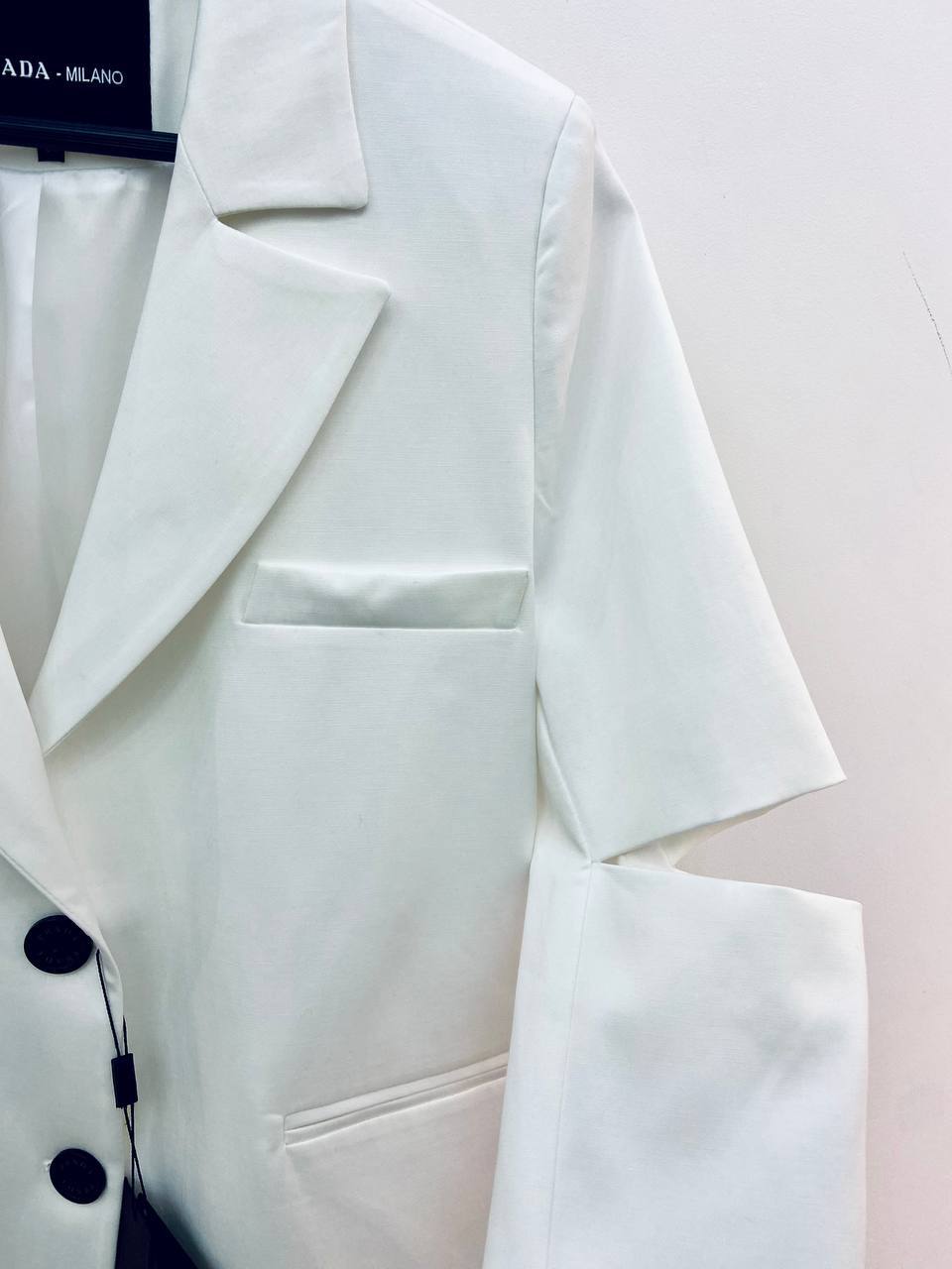 Стильная классика. Особенности: Плотная качественная ткань с идеальной посадкой Прямой силуэт с однобортной застежкой Разрезы на рукавах - функциональная и стильная деталь Универсальный белый цвет С чем носить: С черными брюками и рубашкой для делового стиля С джинсами и футболкой для повседневного образа С шелковым платьем для вечернего выхода Для: работы, мероприятий, городских прогулок.
