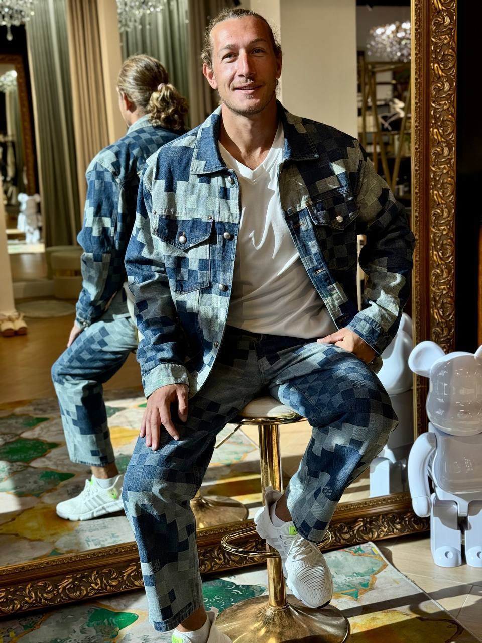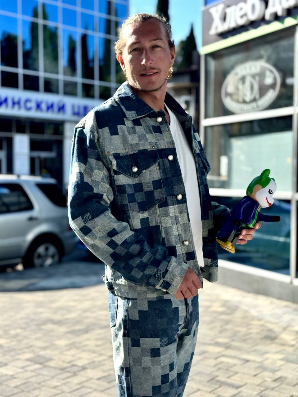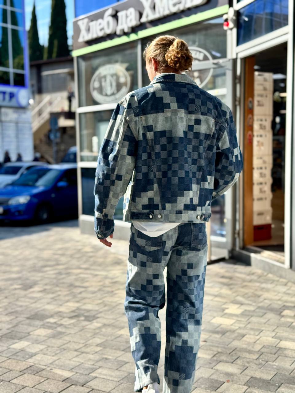 Джинсовый образ с принтом Damoflage 3 образа: 1. Уличный шик – с кроссовками и цепями 2. Смарт-кэжуал – с водолазкой и челси 3. Вечерний лук – с шёлковыми шортами и ботфортами Фишка: градиентный жаккард + винтажные пуговицы. Носите вместе или раздельно – с юбками, свитерами или топами.