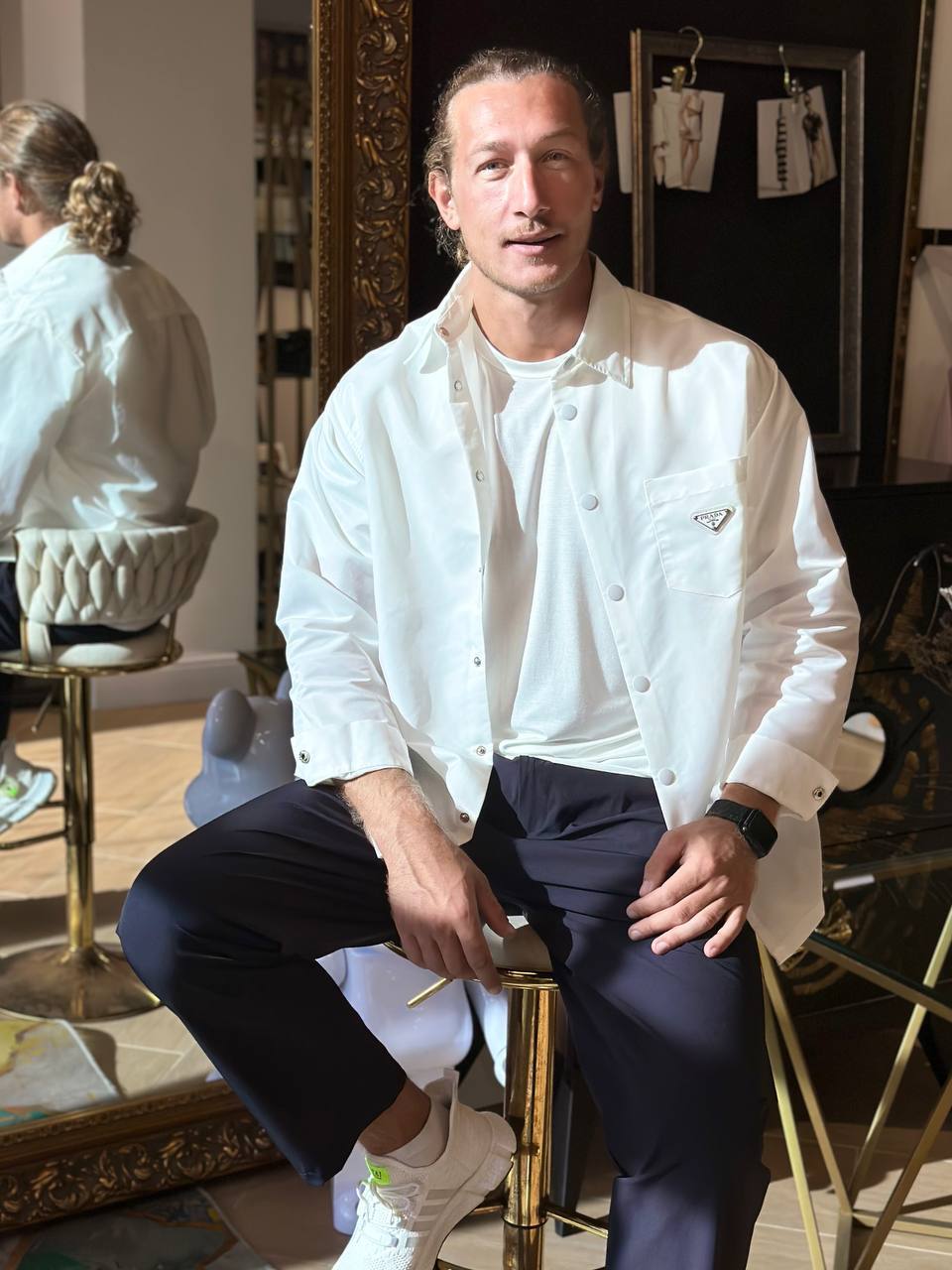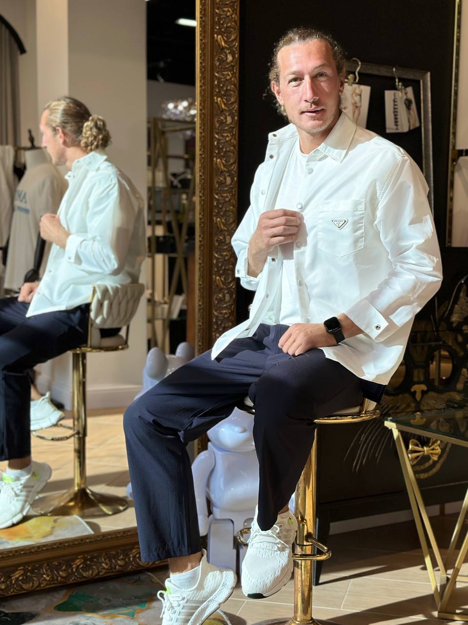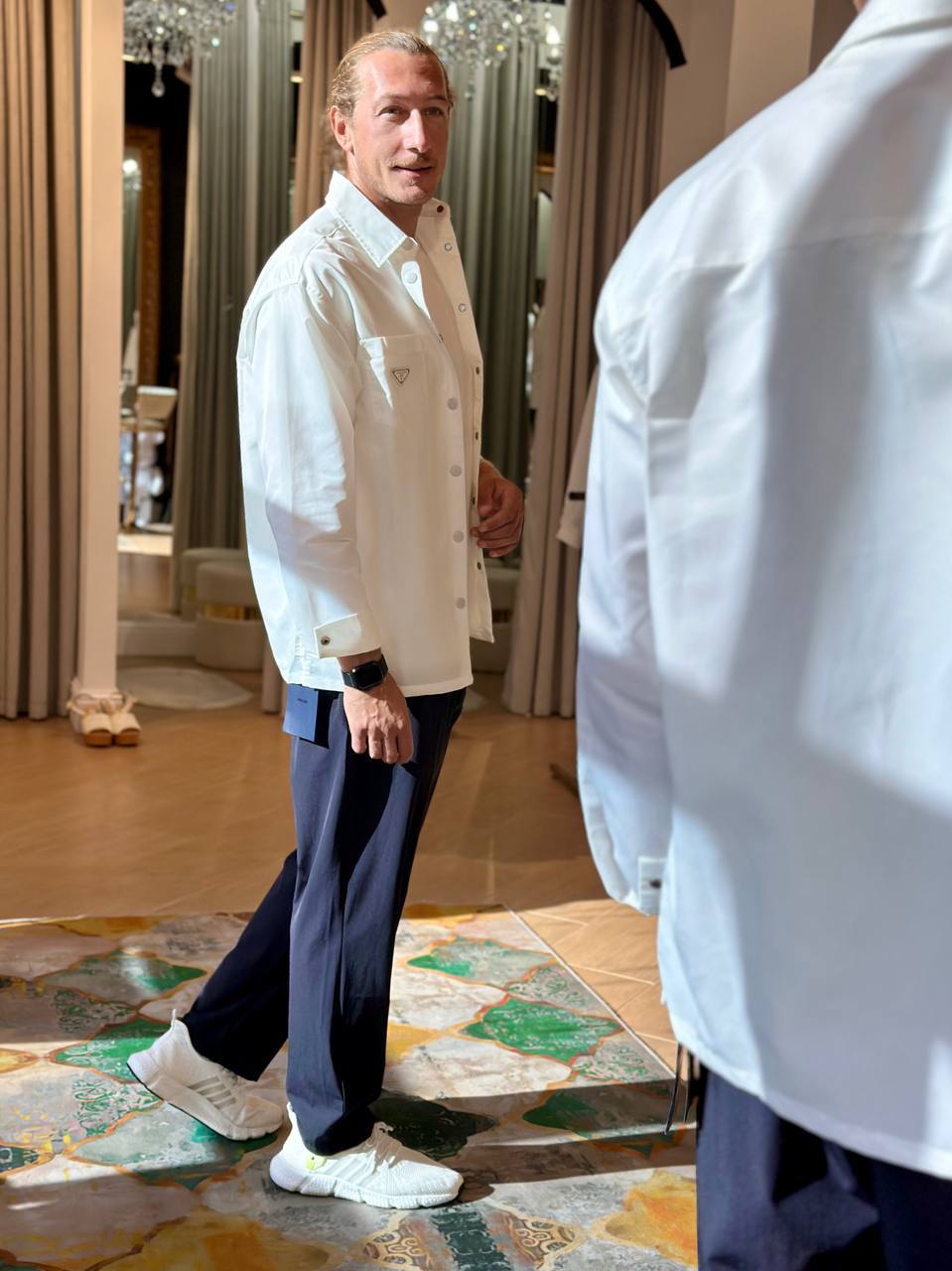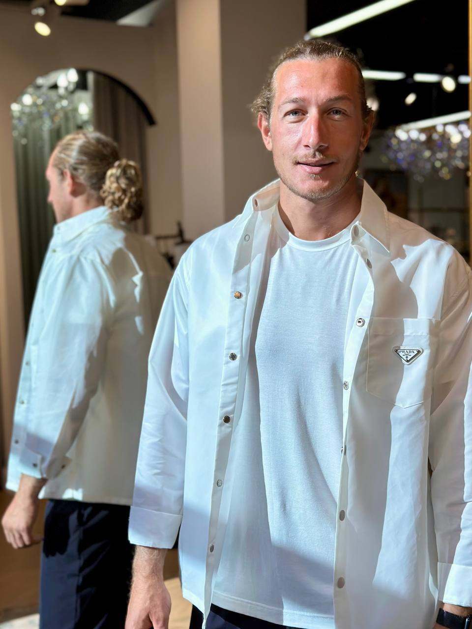Почему образы с этой рубашкой must-have: Износостойкий непромокаемый материал – защита от ветра и легкого дождя Удлиненный прямой крой – универсальная посадка под любой тип фигуры Фирменный треугольный логотип – лаконичный знак роскоши Как носить: Спортивный стиль: с худи и кроссовками Городской кэжуал: с футболкой и джинсами Минимализм: с монохромным низом и кожаными кедами Фишка: нагрудный карман с лого – акцентная деталь, подчеркивающая статусность вещи.