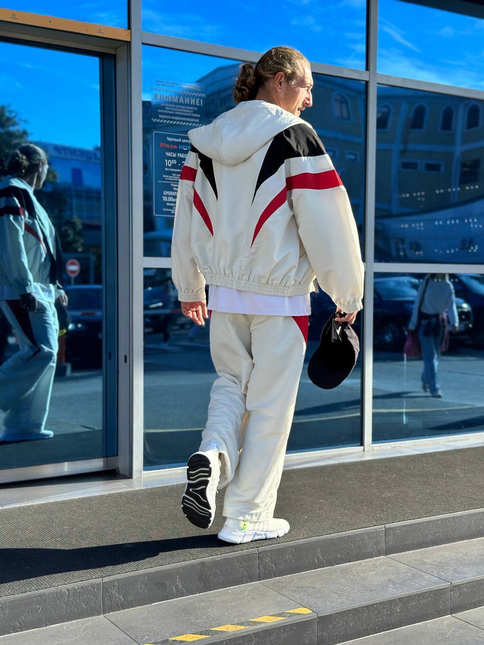 3В Sports Icon: Спортивный образ в трендовом стиле 3 способа носить: Полный сет – с кроссовками и кепкой для уличного стиля Брюки – с оверсайз-худи и кедами для расслабленного лука Куртка – с чёрными джоггерами и высокими носками для спортивного образа Фишки: - Прямой крой брюк на средней посадке - Боковые карманы на молнии – удобно и стильно - Универсальная расцветка под любой гардероб